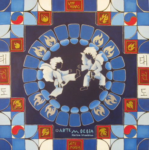 Tanzenden Türme" Spachteltechnik 100x100cm |
